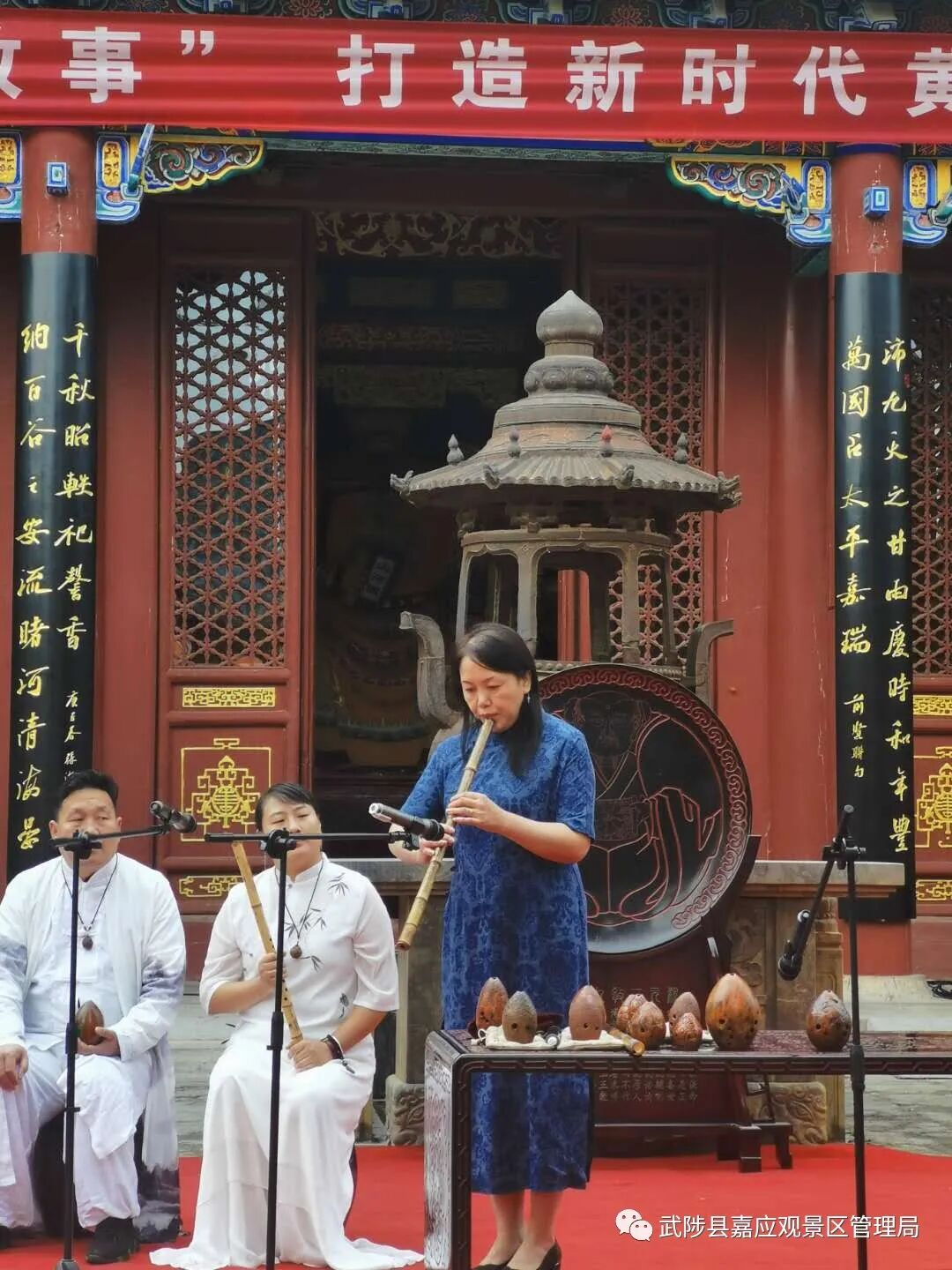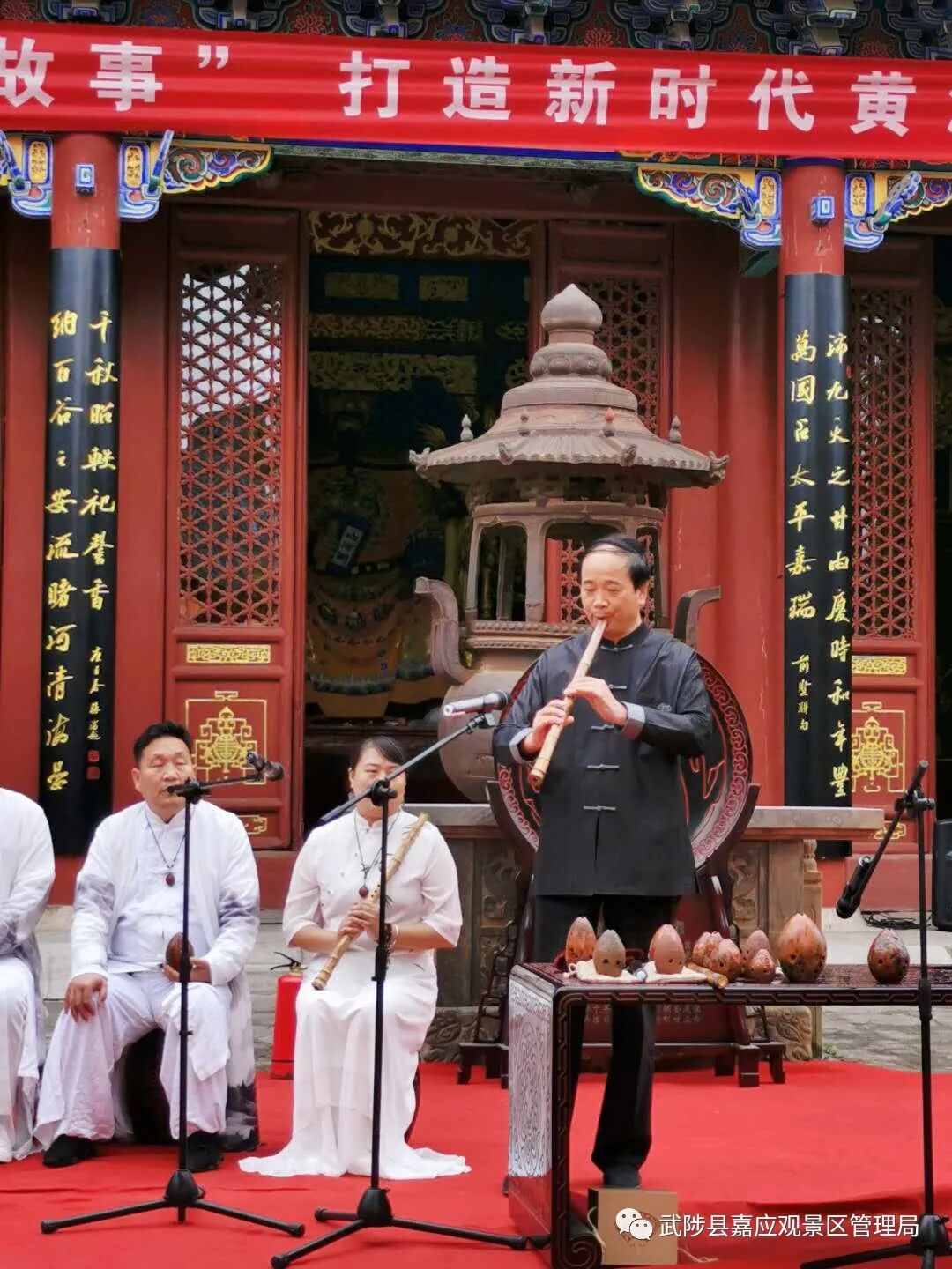 为庆祝中华人民共和国成立71周年,景区在做好常态化疫情防控的前提下,准备了丰富多彩的活动,来隆重庆祝这难得的世纪节日,特邀洛城闻笛箫乐团助力嘉应观首届黄河文化艺术节洛城闻笛箫乐团精心准备了“ 铁血丹心 ”、“ 绿野仙踪”、“今生情可鉴”等精彩节目。