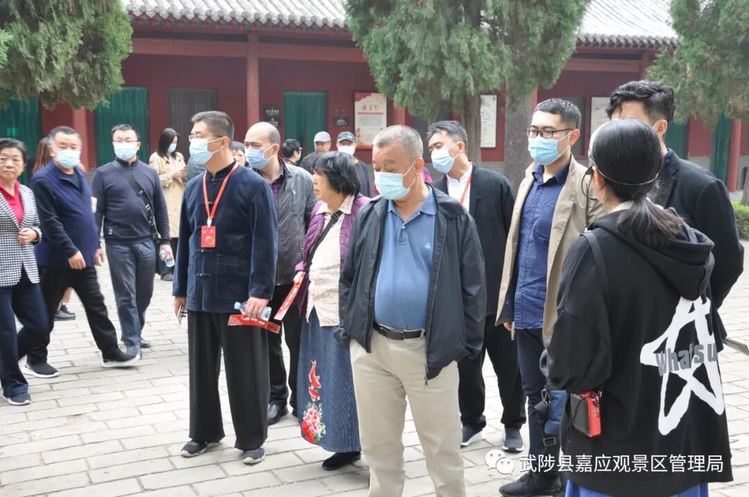 2020年10月9日上午,由河南省文化和旅游厅、河南黄河河务局、河南省体育局、河南省社科联、中共焦作市委、焦作市人民政府、中国社会科学院社科文献出版社、中智科学技术评价研究中心和《世界太极拳蓝皮书》编委会共同主办;中共焦作市委宣传部、焦作市文化广电和旅游局、焦作市体育局、焦作黄河河务局、中共温县县委、温县人民政府、焦作市黄河文化研究中心、中投泰吉文化发展(北京)有限公司承办的黄河文明与太极文化研讨会暨《世界太极拳蓝皮书》首发式。参加首发式专家学者共计200余人,分别来自中国社会科学院、中国武术研究院、北京大学、清华大学、北京体育大学、上海体育学院、北京理工大学、首都体育学院、东北财经大学、江西师范大学以及河南省内领导专家、学者名流、太极大师莅临嘉应观参观调研。景区通过搭建高层次、高水准的对话交流平台,与各位专家学者共同研究探讨黄河文化,为弘扬“黄河文化”、传承“黄河文化”引入新的思路,注入新的活力。